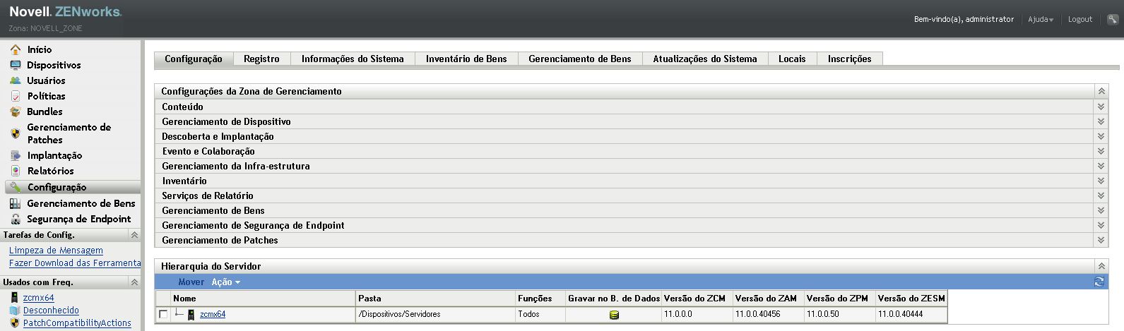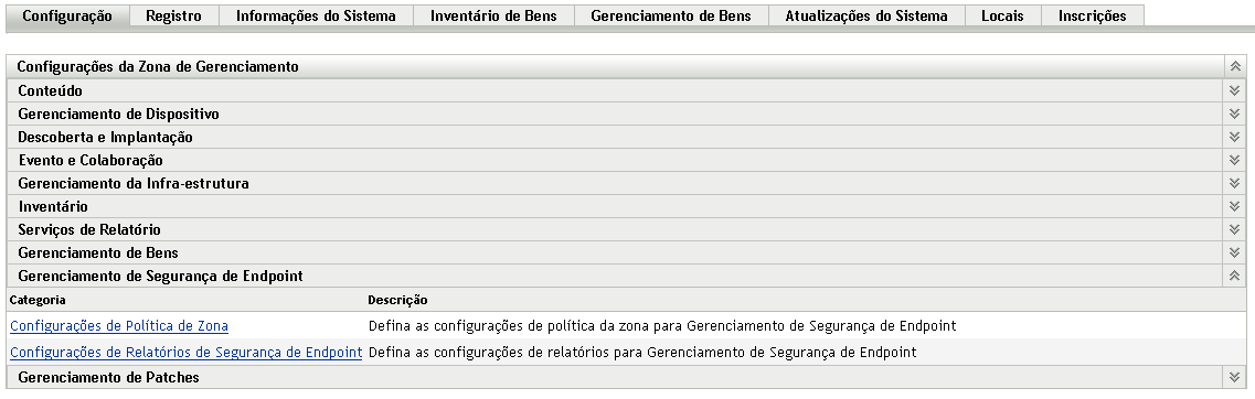 No ZENworks Control Center, clique em para exibir a página Configuração.