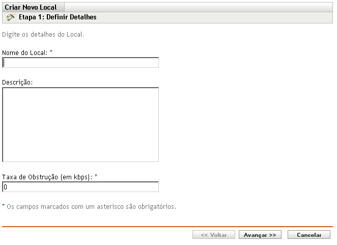 Na página Definir Detalhes, especifique um nome ao local e depois clique em .