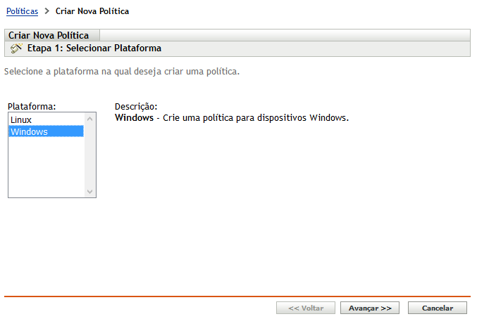 Na página Selecionar Categoria de Política, selecione Políticas de Segurança de Endpoint do Windows, depois clique em Avançar.