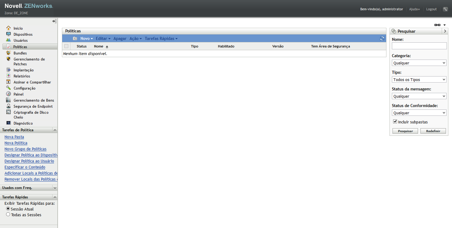 Para obter informações sobre as configurações de uma política, clique em Ajuda > Página Atual no ZENworks Control Center.