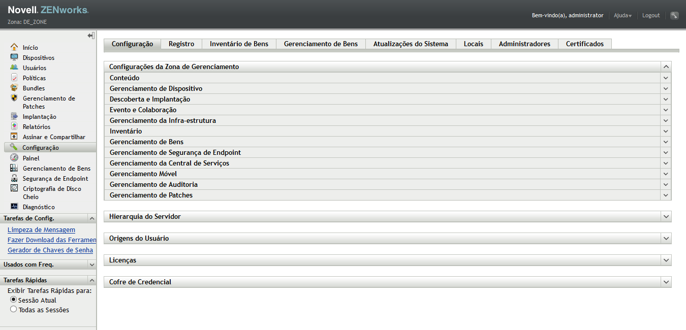 1. No ZENworks Control Center, clique em Configuração para exibir a página Configuração.