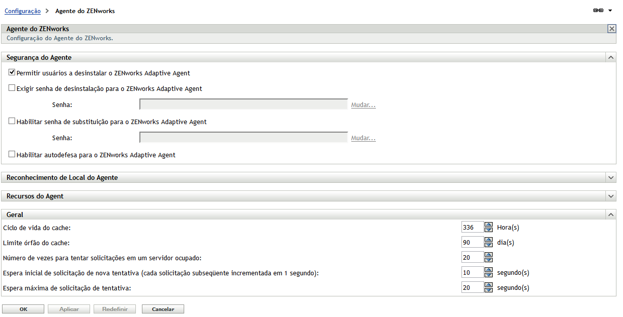 Para garantir a segurança do ZENworks Adaptive Agent nos dispositivos, é possível configurar as definições de desinstalação e de autodefesa para o agente.