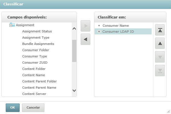 Para adicionar um campo pelo qual classificar, clique duas vezes no item no painel Campos disponíveis ou selecione o item e clique em