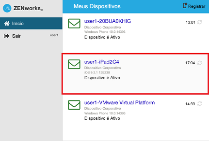 Todos os dispositivos associados ao usuário são exibidos no Portal do Usuário do ZENworks.