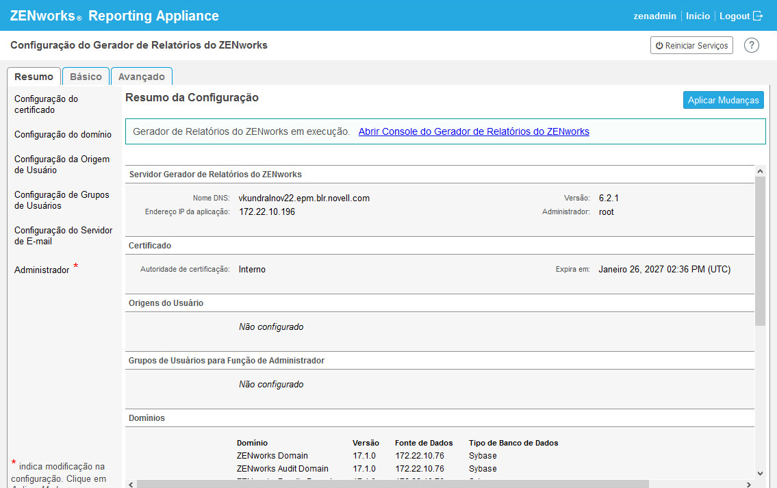 Após configurar o Gerador de Relatórios do ZENworks, você poderá redefinir as configurações.