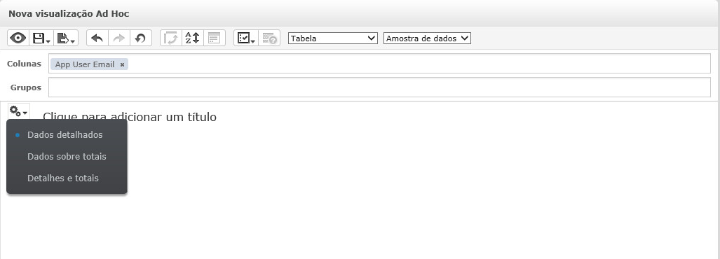 Na Tela de Tabela, os campos disponíveis são Colunas e Grupos.