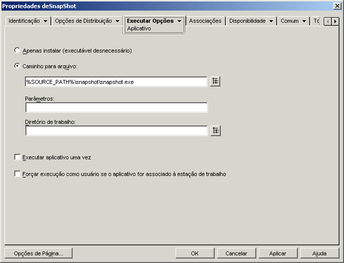 IMPORTANTE:o Agente do ZENworks Desktop Management e o Servidor de Camada Intermediária do ZENworks não oferecem suporte para a inicialização de aplicativos a partir de uma localização de rede. Se o executável estiver localizado na rede, utilize essa opção somente se os usuários tiverem um cliente de rede (Novell Client ou Cliente para Redes Microsoft) instalado que permita a inicialização a partir de um servidor NetWare® ou Windows.