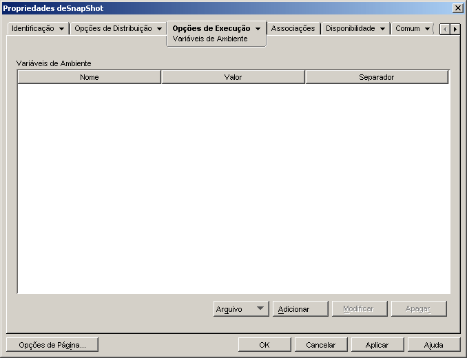 Figura 48-20 Objeto Aplicativo > Guia Opções de Execução > Página Ambiente