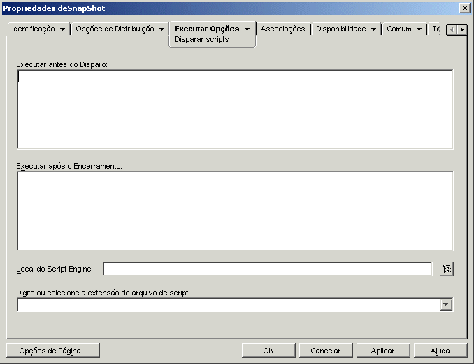 Figura 48-19 Objeto Aplicativo > guia Opções de Execução > página Scripts de Disparo