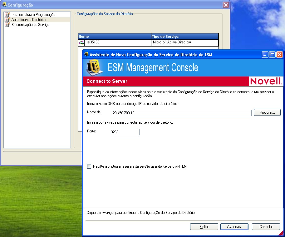 Digite um nome amigável para o Serviço de Diretório e selecione eDirectory na lista suspensa .