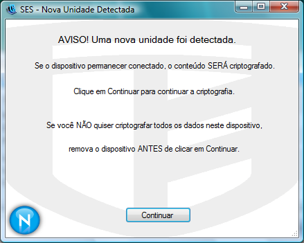 Figura 3-1 Aviso de Criptografia quando um Novo Dispositivo é Inserido