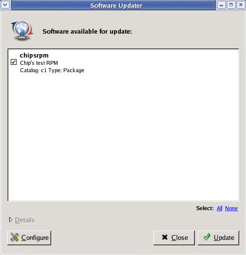 No ZENworks Linux Management - Dell Edition, esses três applets de área de trabalho fáceis de usar dão aos usuários a capacidade de atualizar softwares existentes, instalar novos softwares ou remover softwares existentes dos dispositivos gerenciados. Esses applets substituem os clientes de interface do usuário usados nas versões anteriores do ZENworks Linux Management. O Atualizador, o Instalador e o Removedor de Software fornecem aos usuários uma maneira simples de gerenciar softwares; além disso, o processo é integrado à área de trabalho do dispositivo gerenciado. Se for necessária uma interface de usuário requintada, você deve usar a interface de linha de comando rug para realizar essas mesmas tarefas. Para obter mais informações, consulte a Section 4.4, rug.