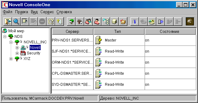 Для выполнения операций с разделами и тиражирования необходимо право "Супервизор" на ту часть дерева eDirectory, которую Вы собираетесь разбивать на разделы или тиражировать. Контейнеры дерева, рядом с которыми имеется значок