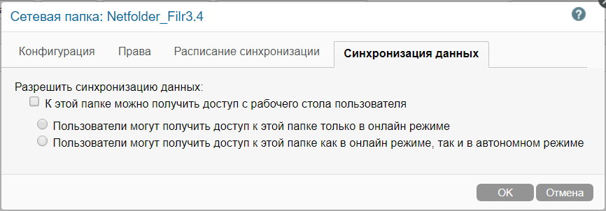 На консоли администрирования последовательно выберите пункты Управление > Сетевые папки > Выберите щелчком мыши сетевые папки, для которых не нужно выполнять синхронизацию с клиентом Desktop.