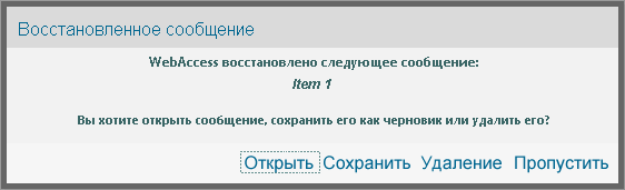 Если при запуске WebAccess восстанавливается только одно автоматически сохраненное сообщение, выводится следующее сообщение: