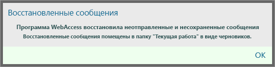 Если при запуске WebAccess восстанавливаются шесть и более автоматически сохраненных сообщений, выводится следующее сообщение: