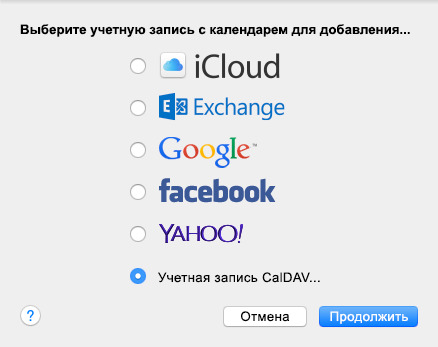 2. Выберите вариант «Учетная запись CalDAV».