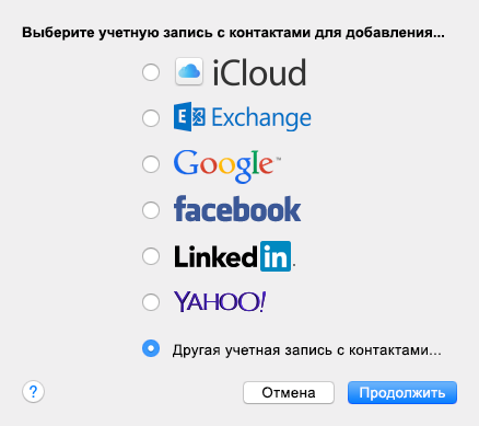2. Выберите вариант «Другая учетная запись с контактами».