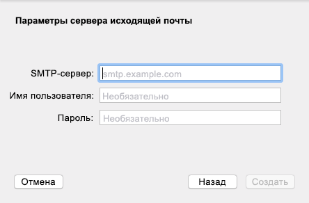 Укажите SMTP-сервер, имя пользователя и пароль.