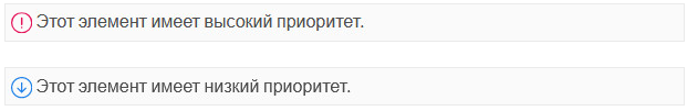 По умолчанию элемент любого типа в GroupWise Web имеет при создании и отправке Стандартный приоритет. Элементы, отправленные со стандартным приоритетом, никак не помечены, тогда как элементы с уровнем приоритета «Высокий» или «Низкий» отмечаются специальными значками. Кроме того, при отображении элементов с высоким или низким приоритетом на панели предварительного просмотра вверху области сообщения отображается соответствующий заголовок (см. ниже).