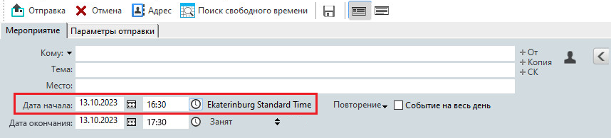 Когда пользователи, запланированные с помощью функции «Часовой пояс», получат это мероприятие, после темы мероприятия они увидят время, на которое оно запланировано. Например, если темой встречи является «Конференция по маркетингу», а часовым поясом встречи будет являться Москва, пользователи увидят в мероприятии следующее: Конференция по маркетингу (Москва). В календарях пользователей место аннотируется часовым поясом, а не темой.