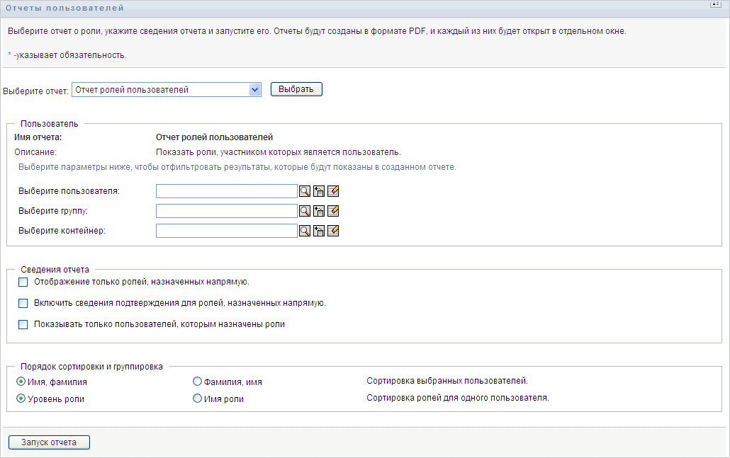 Чтобы создать и просмотреть отчет о пользовательских ролях: