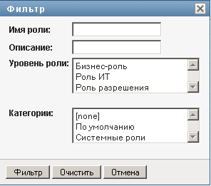 В диалоговом окне введите строку для фильтрации по имени или описанию роли либо выберите один или несколько уровней или категорий ролей.