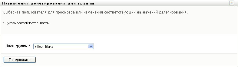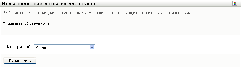 Вам разрешено определять делегатов для членов группы, менеджером которой Вы назначены, в течение всего времени, пока определение группы дает Вам такое разрешение. Чтобы настраивать делегирование для группы, менеджер группы должен иметь разрешение "Настроить делегата".