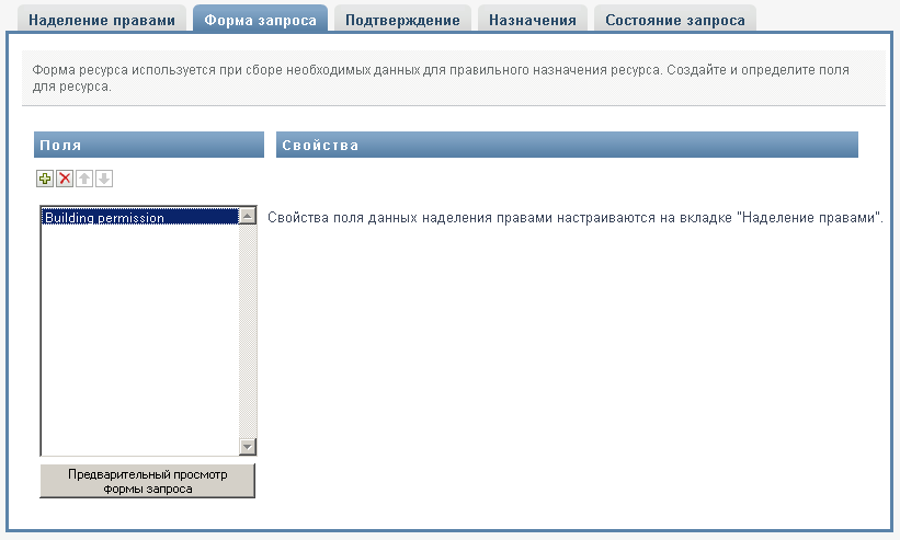 В примере выше поле используется для ввода значения параметра наделения правами, тогда как поля и являются вспомогательными. Эти поля не являются частью определения наделения правами. Вместо этого они были добавлены к определению ресурса.