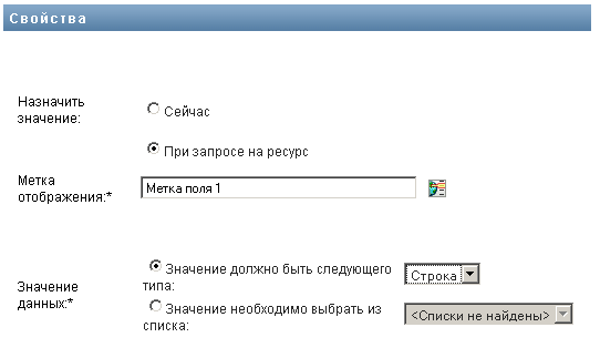 Установите метку для поля и укажите, должно ли значение относиться к конкретному типу данных или выбираться из списка.