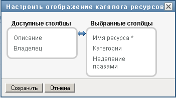 позволяет Вам выбирать и отменять выбор столбцов, а также менять порядок расположения столбцов в просматриваемом списке ролей. Выбор столбцов и порядок их расположения управляются параметрами настройки в диалоговом окне . При изменении списка столбцов или изменении порядка их расположения эти настройки сохраняются в хранилище вместе с Вашими пользовательскими настройками.