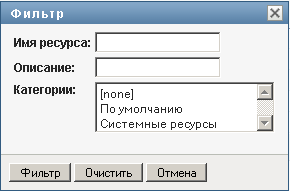 В диалоговом окне введите строку фильтрации по имени или описанию ресурса, или выберите одну или несколько категорий, ресурсы которых хотите видеть. Нажмите :