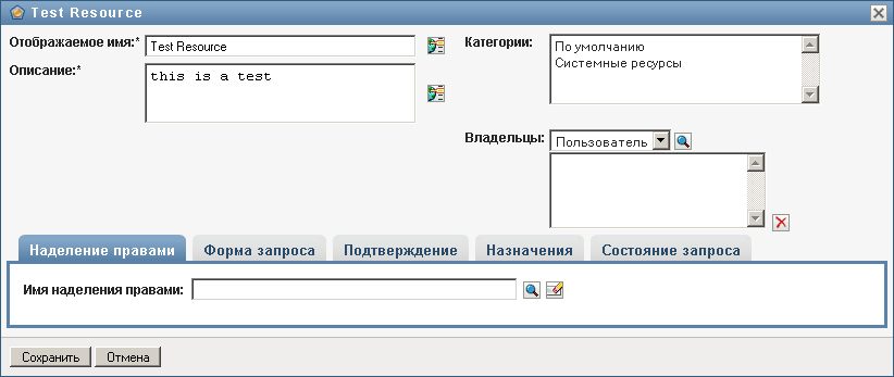 Подробнее о работе с формой запроса см. Назначение ресурса из каталога.
