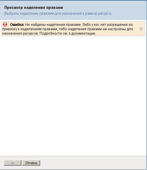 ПРИМЕЧАНИЕ.Если Вы неправильно настроили ресурс DirXML, при доступе к странице для выбора наделения правами Вы увидите сообщение о том, что Вы не настроили свои наделения правами для сопоставления ресурсов.