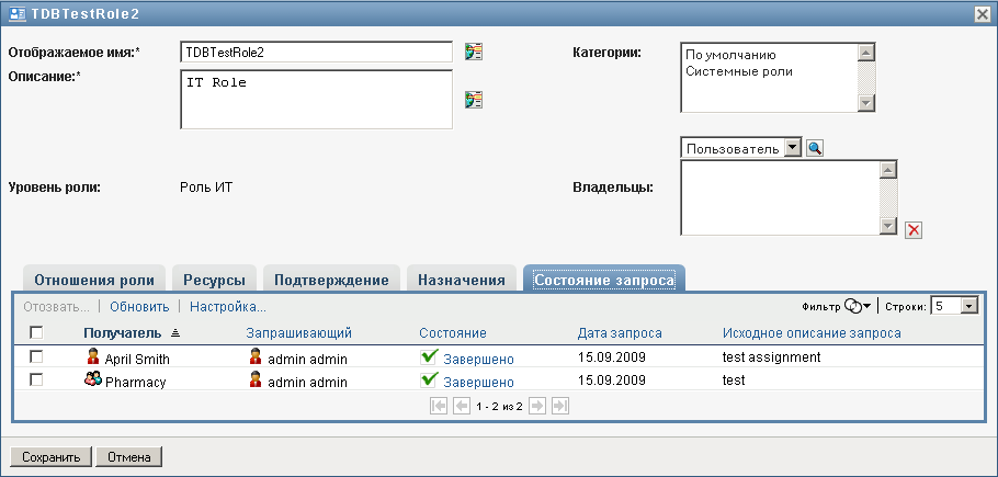 Подробнее о работе с формой запроса о назначении ролей см. Назначение роли из каталога.