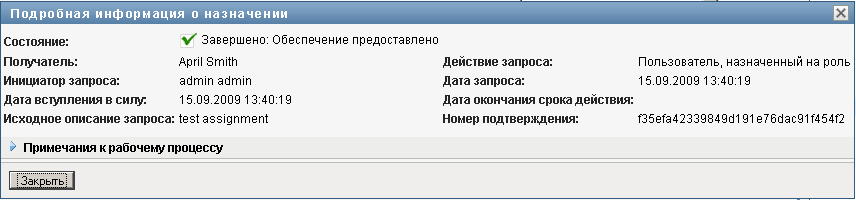 Откроется окно "Подробная информация о назначении":