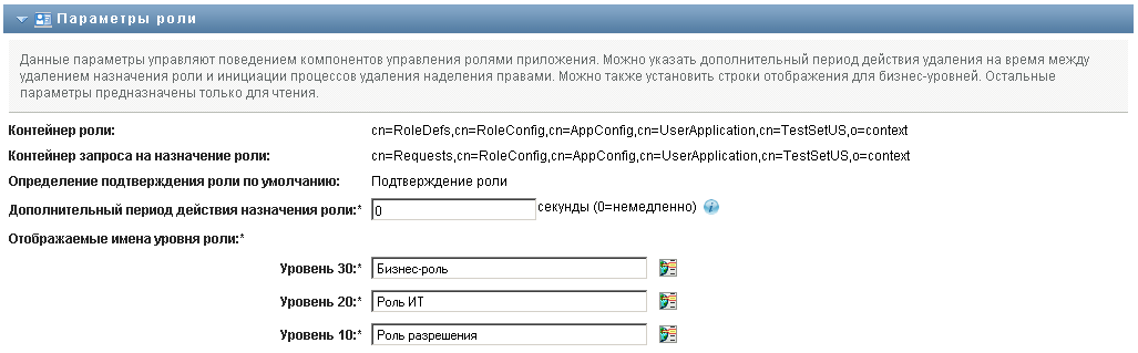 Определите отображаемое имя для уровней ролей. Каждый уровень имеет свое отображаемое имя, которое можно перевести на разные языки. Для ввода строк на иностранных языках щелкните .