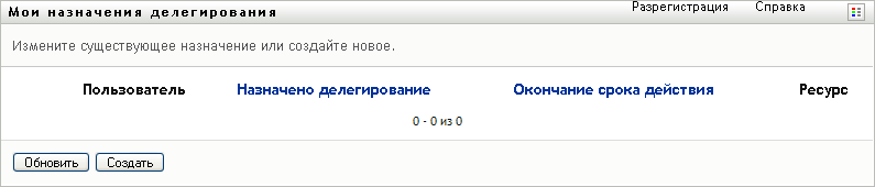 При наличии административных привилегий Вы получите доступ к кнопкам, при помощи которых сможете создавать и изменять назначения делегирования.