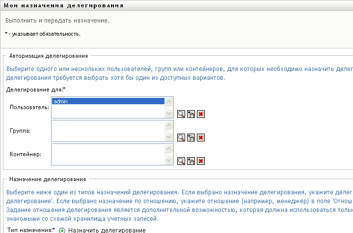 Выберите пользователей, группы или контейнеры, для которых нужно определить делегата.