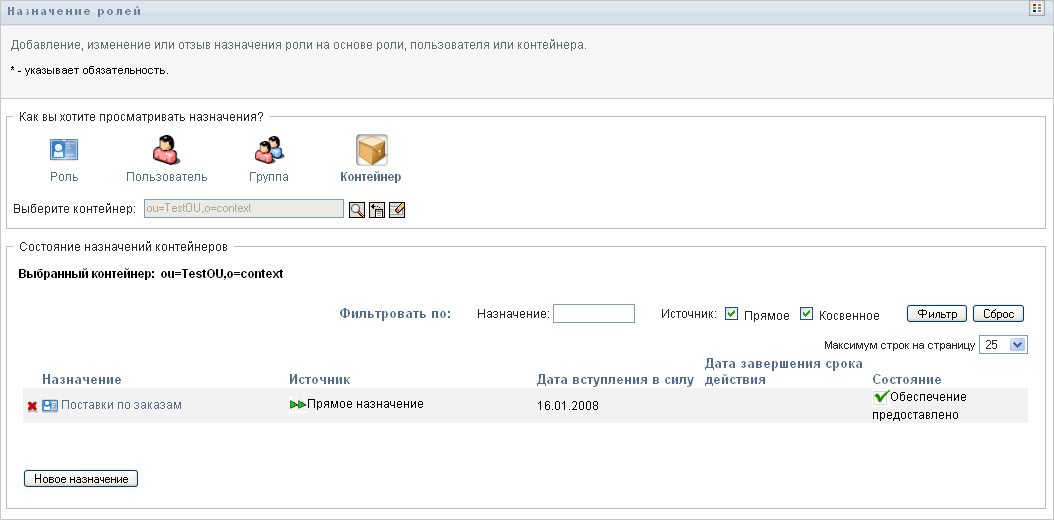 Чтобы просмотреть только те роли, которые были назначены опосредованно, установите флажок . Косвенные назначения - это те назначения, которые контейнер получает благодаря отношению ролей.