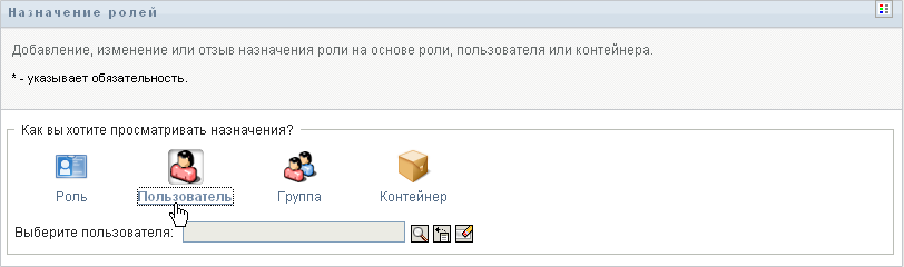 В раскрывающемся списке выберите , или , чтобы указать, объекту какого типа Вы хотите назначить текущую выбранную роль.