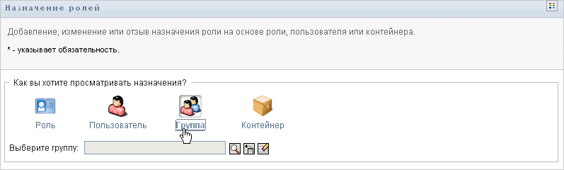 Выберите группу, которой хотите назначить одну или несколько ролей.