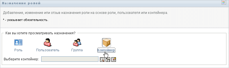 Выберите контейнер, которому хотите назначить одну или несколько ролей.