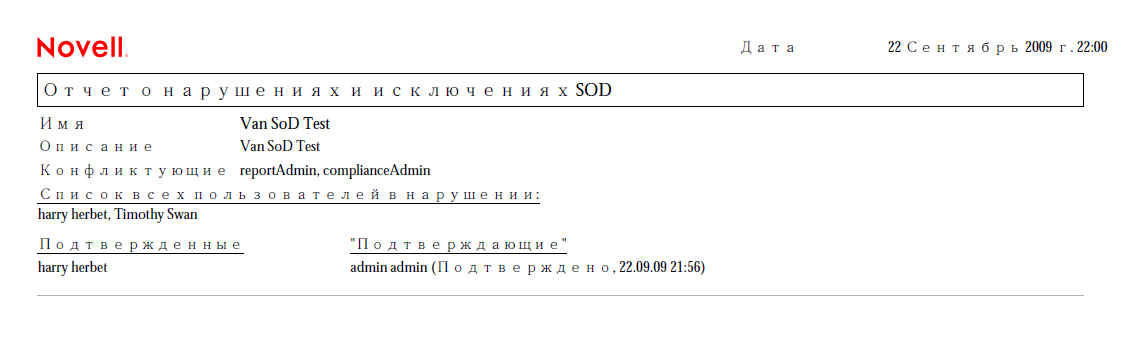 Рисунок 18-3 Пример отчета об ограничениях SoD