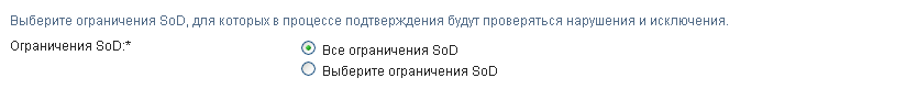 Выберите ограничения SoD, исключения и нарушения которых требуется подтверждать, как описано ниже: