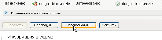 ПРИМЕЧАНИЕ.Для переназначения задачи Вы должны быть администратором обеспечения правами доступа или менеджером обеспечения правами доступа (или менеджером группы), который имеет разрешение . Если у Вас нет такого разрешения, кнопка недоступна.