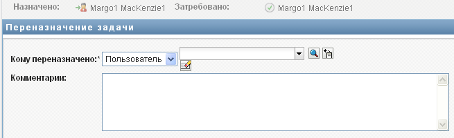 ПРИМЕЧАНИЕ.Чтобы переназначить задачу, необходимо быть администратором обеспечения правами доступа или менеджером обеспечения правами доступа (или менеджером группы), который имеет разрешение . Если у Вас нет такого разрешения, кнопка будет недоступна.