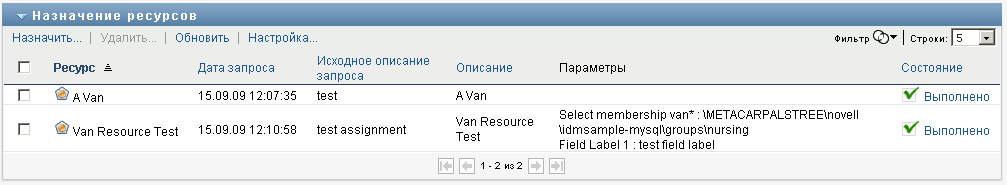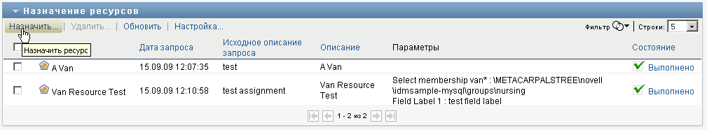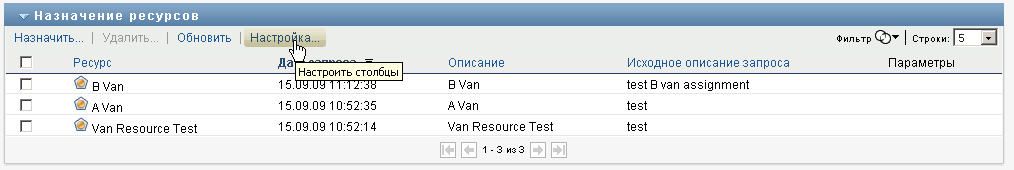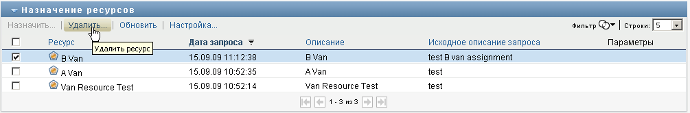 Задайте строку фильтрации по исходному описанию запроса, имени ресурса, описанию или параметрам, связанным с назначением ресурса.