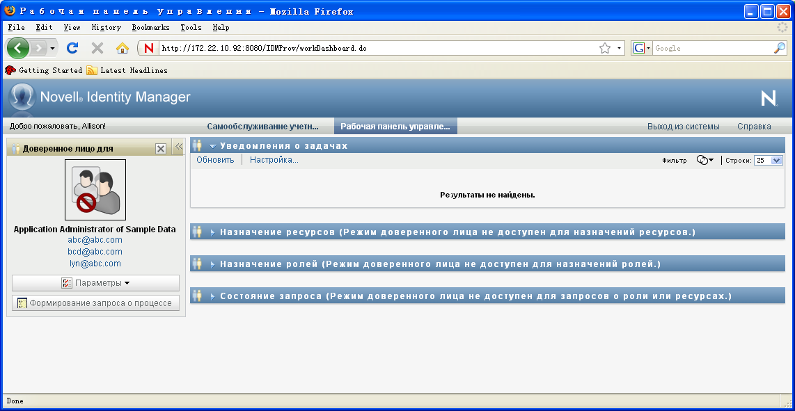 Если Вы не уполномочены действовать в качестве доверенного лица какого-либо другого пользователя, приложение User Application выведет следующее сообщение: