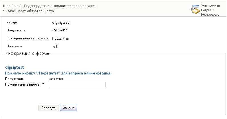 Сообщение о подтверждении цифровой подписи может меняться в зависимости от того, как ресурс обеспечения был настроен администратором.